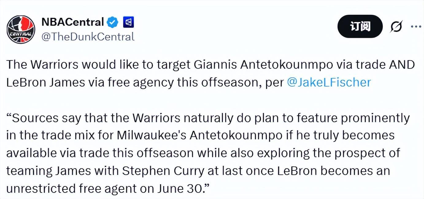 开云体育下载网址-曝勇士今夏将追两大巨星!全力交易字母哥 寻求签詹姆斯联手库里